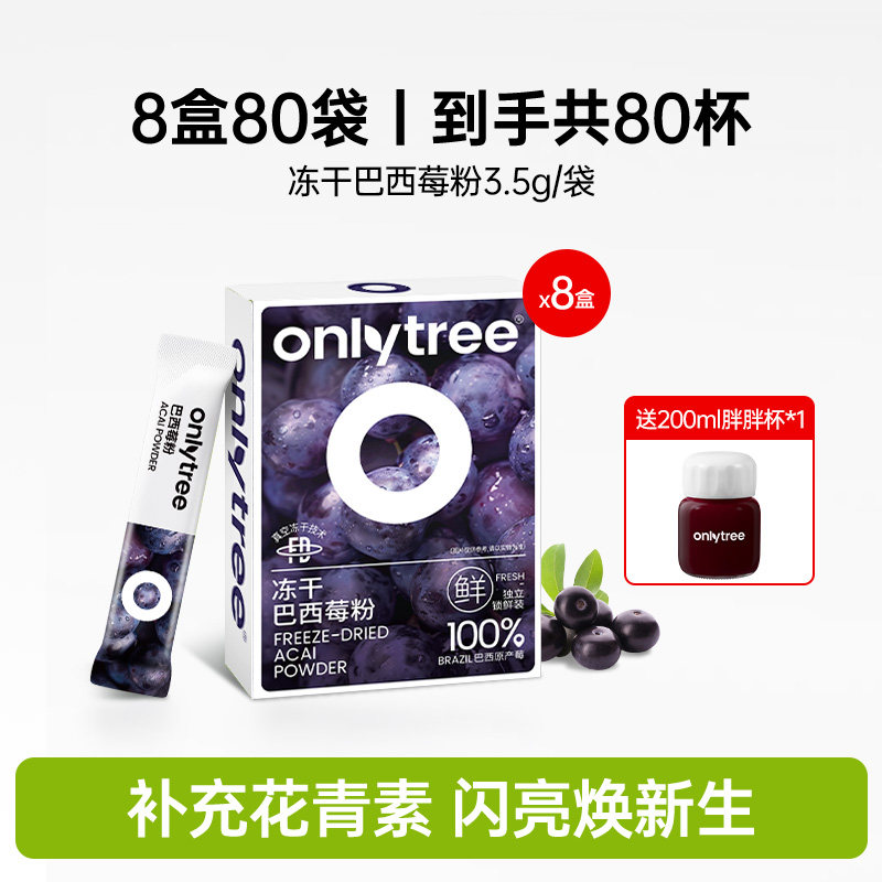 onlytree冻干纯巴西莓粉官方正品花青素果蔬菜粉健身代餐 【赠胖胖杯】8盒80杯