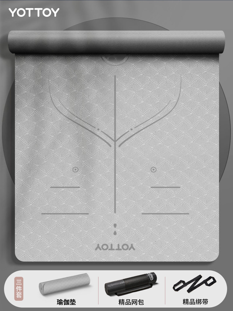 yottoy瑜伽垫健身垫家用防滑减震静音加厚加宽隔音女生专用 【瑜伽赛事评委推荐】玛瑙灰-(185*80cm)-双色体位线 6mm(初学者)