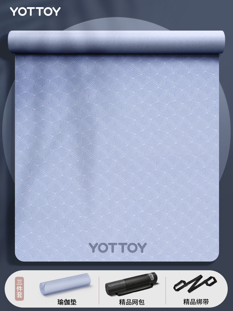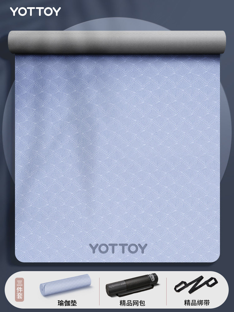 yottoy瑜伽垫家用地垫初学者防滑女生专用隔音减震健身舞蹈跳操 云山蓝-(双色logo款) 【185*80cm】 6mm(初学者)