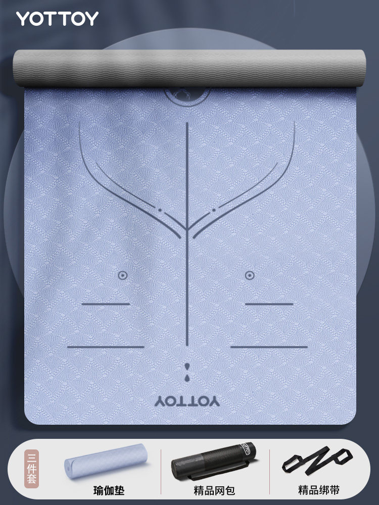 yottoy瑜伽垫健身垫家用防滑减震静音加厚加宽隔音女生专用 【瑜伽赛事评委推荐】云山蓝-(185*80cm)-双色体位线款 7mm(初学者)