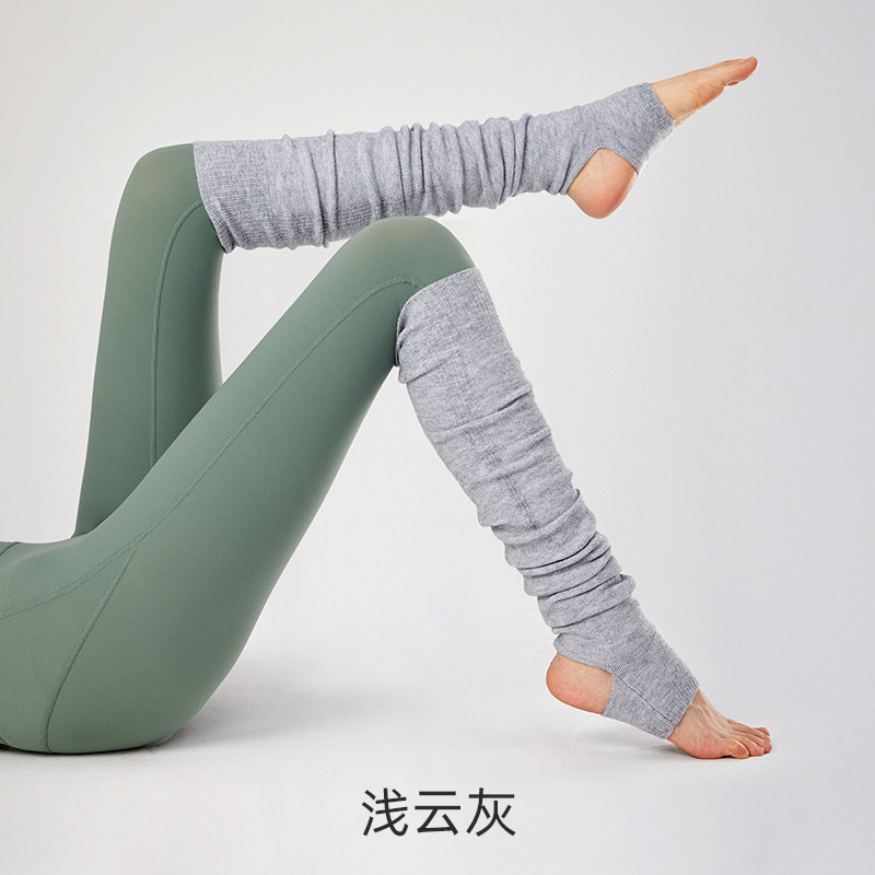 yottoy专业瑜伽袜套女过膝长筒冬季保暖瑜珈堆堆袜子普拉提厚袜套 浅云灰