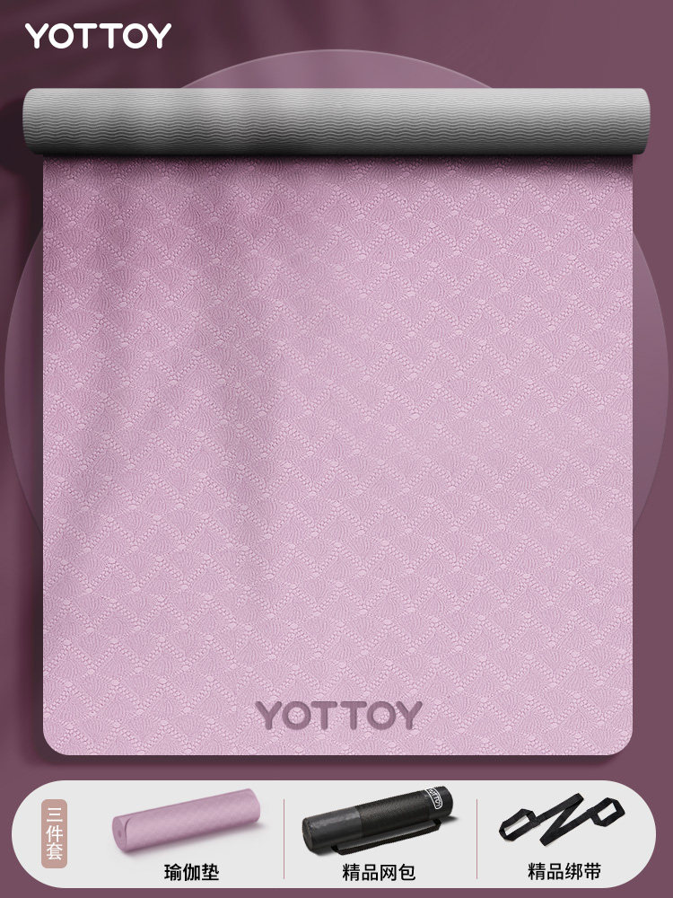 yottoy瑜伽垫健身垫家用防滑减震静音加厚加宽隔音女生专用 【瑜伽赛事评委推荐】 凤信紫-(185*80cm)-双色体位线款 6mm(初学者)