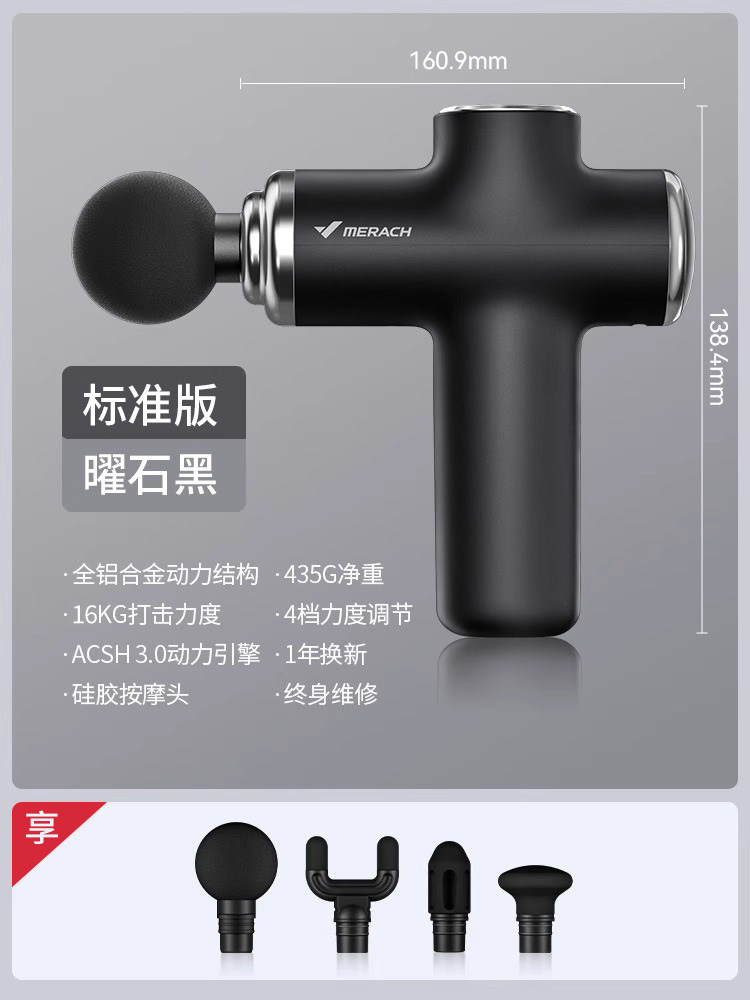 麦瑞克9dmini专业筋膜枪小腿肌肉放松器男女生礼物震动颈膜枪 曜石黑| 435g净重|4个按摩头|3H续航