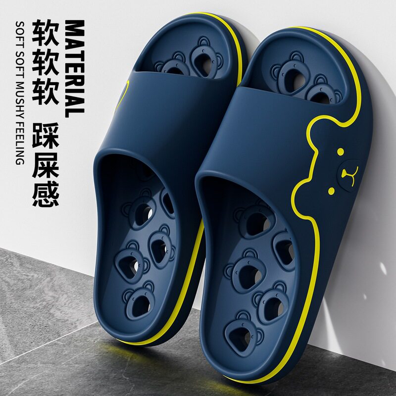 洁丽雅浴室拖鞋女漏水速干家居室内防滑情侣居家用凉拖鞋男士夏季 44-45【标准码】 藏青【升级款】
