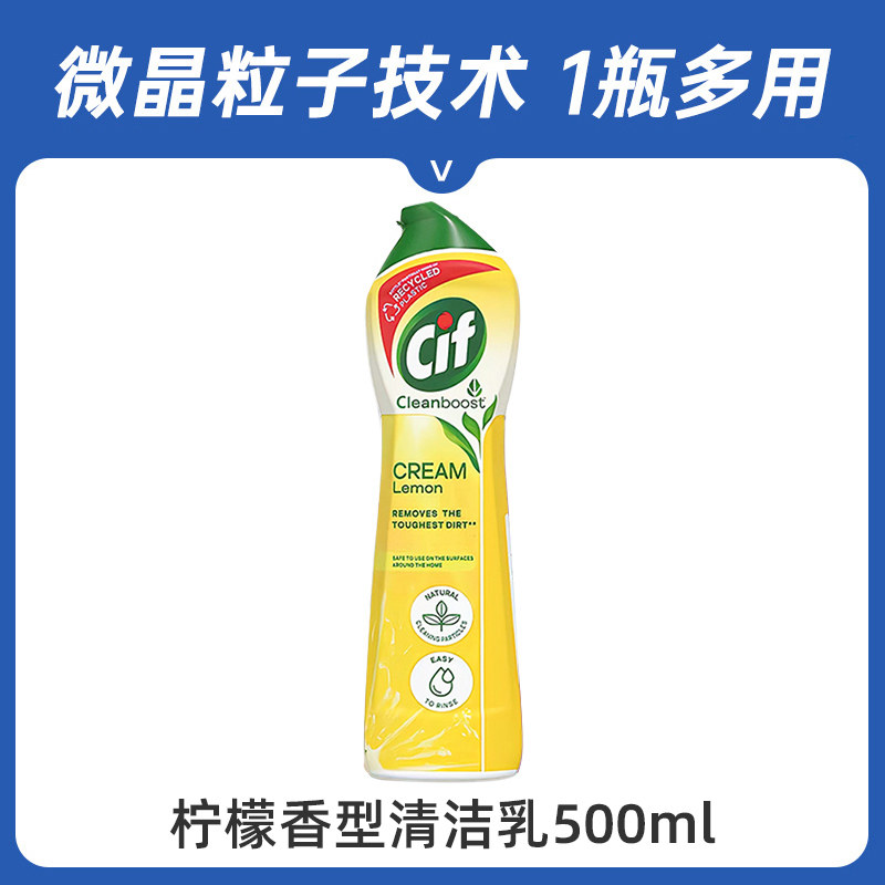 联合利华cif晶杰多功能清洁乳剂厨房油烟机不锈钢小白鞋清洁膏 柠檬多功能清洁乳500ml 1件
