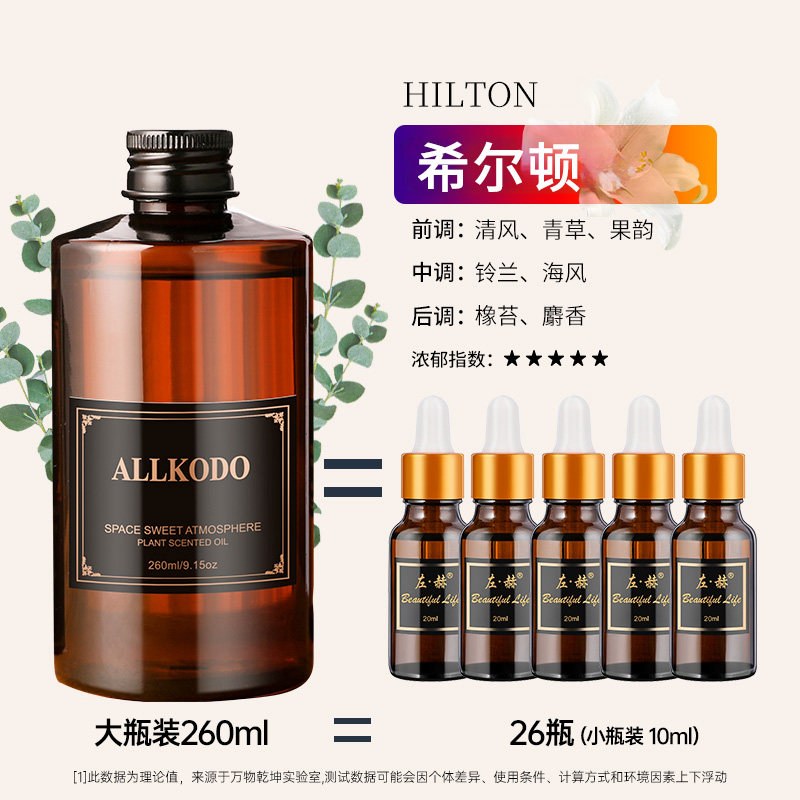单品栀子花香薰补充液大瓶家用室内持久留香卫生间厕所香氛 大瓶香薰补充液 【4瓶囤货装】希尔顿