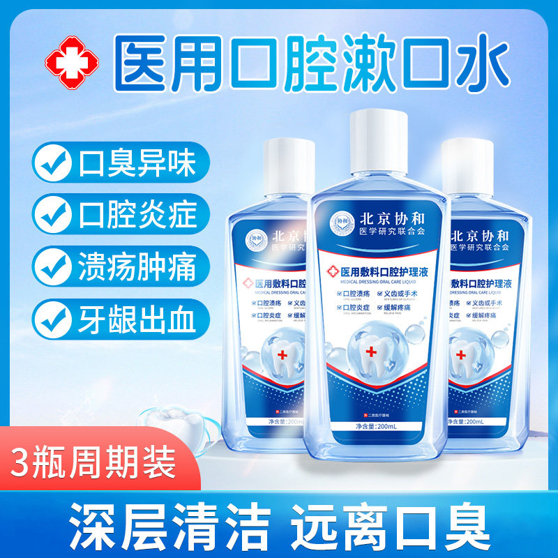 协和花医用漱口水杀菌除口臭消炎牙周炎牙结石牙龈肿痛口腔溃疡遬 3瓶装