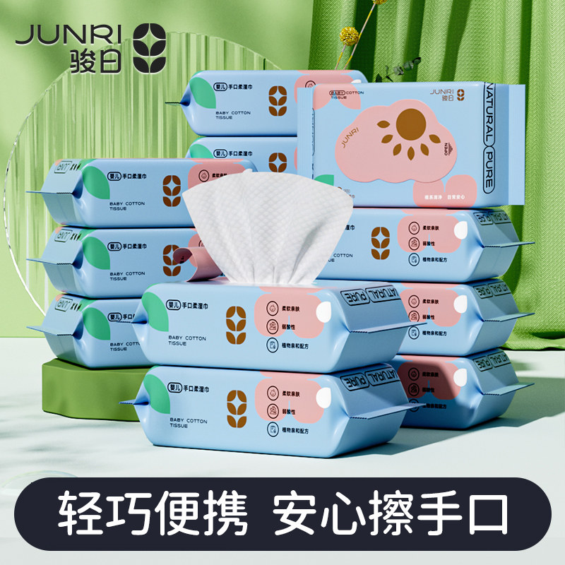 骏日湿巾小包便携婴儿宝宝手口专用湿纸巾儿童中小学生加厚 【升级款65g布手口湿巾20抽】 10包