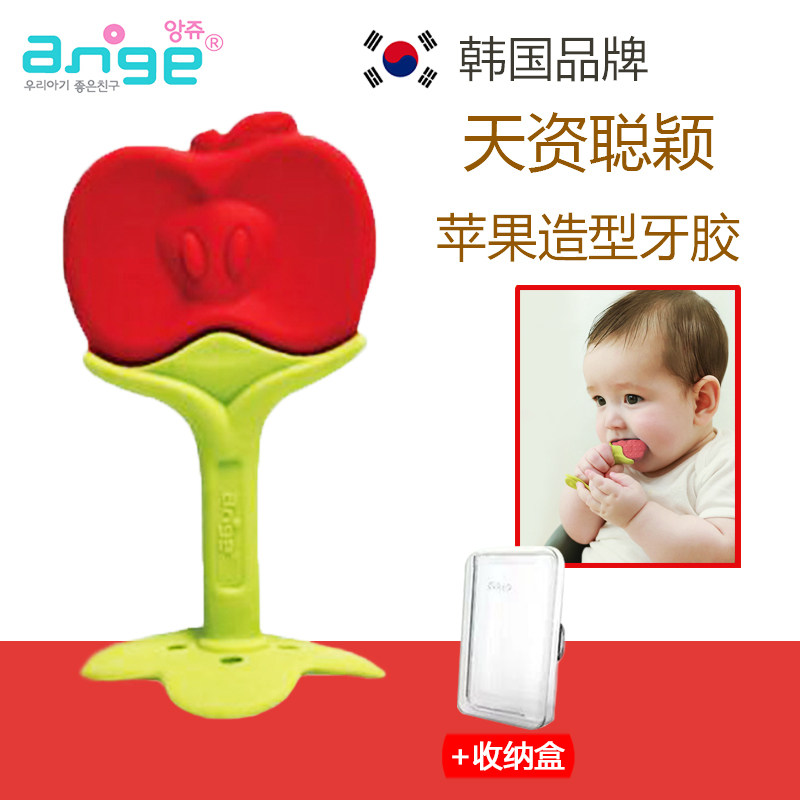 韩国进口ange手抓草莓宝宝牙胶KJC硅胶磨牙棒可水煮防吃手神器 手抓苹果牙胶+收纳盒