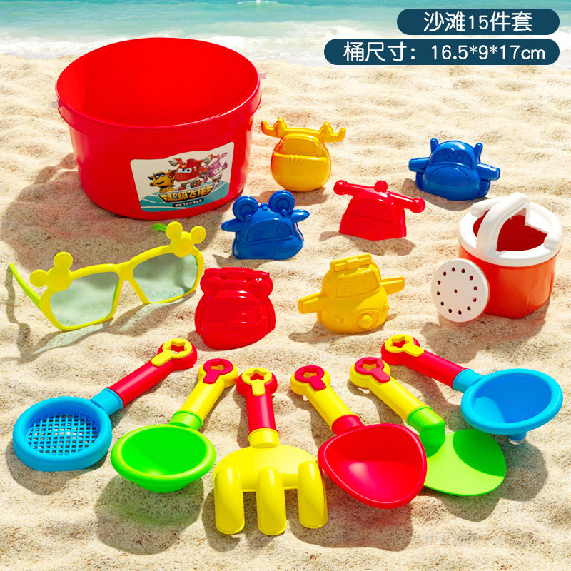 儿童沙滩玩具套装挖沙玩沙工具铲子沙滩桶夏天海边玩沙玩具男女孩 超级飞侠沙滩玩具【15件套】