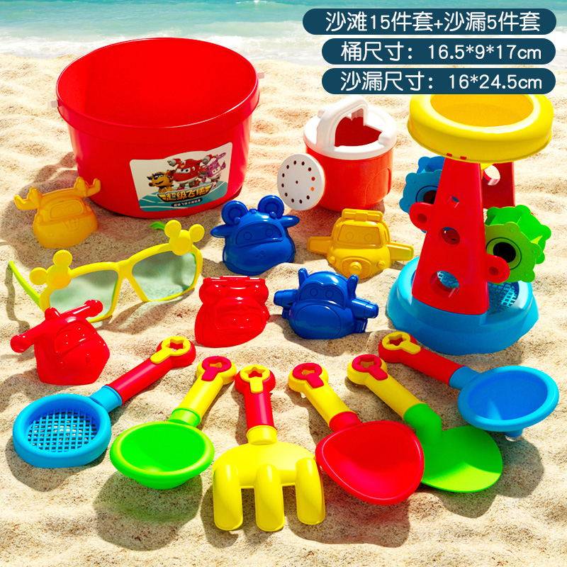 儿童沙滩玩具套装挖沙玩沙工具铲子沙滩桶夏天海边玩沙玩具男女孩 超飞沙滩玩具15件套+沙漏5件套