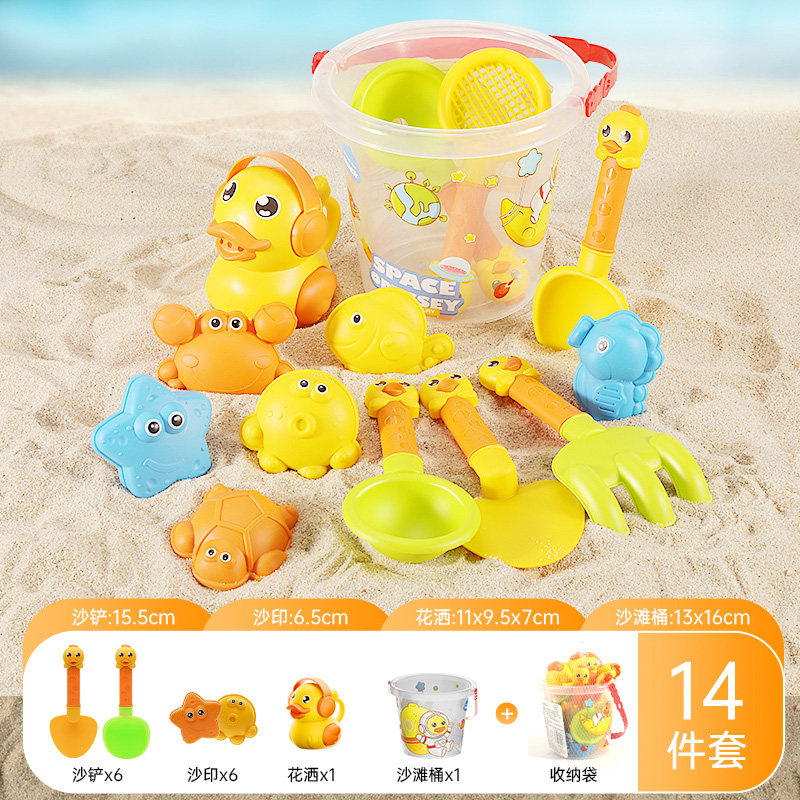 沙滩挖沙工具小黄鸭沙滩玩具儿童套装3-6岁宝宝戏水玩沙装备沙铲 【热款推荐★小黄鸭】沙滩组合14件套