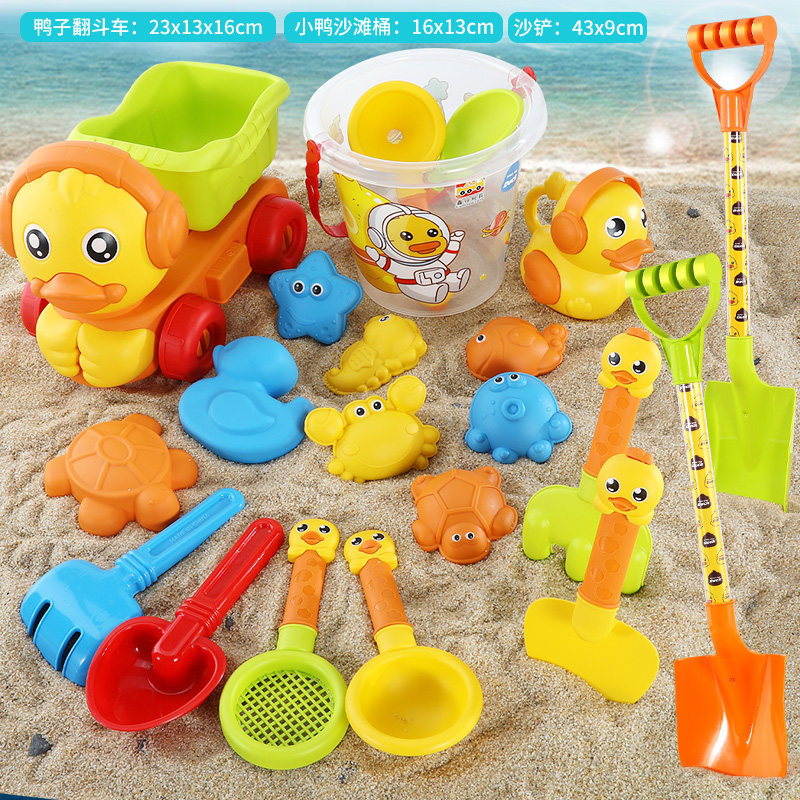 儿童沙滩玩具套装挖沙玩沙工具铲子沙滩桶夏天海边玩沙玩具男女孩 沙滩玩具15件套+鸭子漏斗5件套+鸭子车5件套
