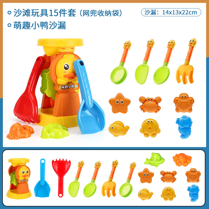 沙滩挖沙工具小黄鸭沙滩玩具儿童套装3-6岁宝宝戏水玩沙装备沙铲 【小黄鸭】沙漏组合15件套