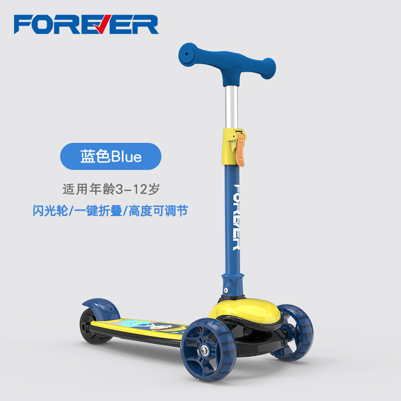 永久滑板车儿童新款1-3-6-12岁以上小男孩女大童宝宝滑滑车可折叠 黄蓝色 【适用年龄:3-12岁】
