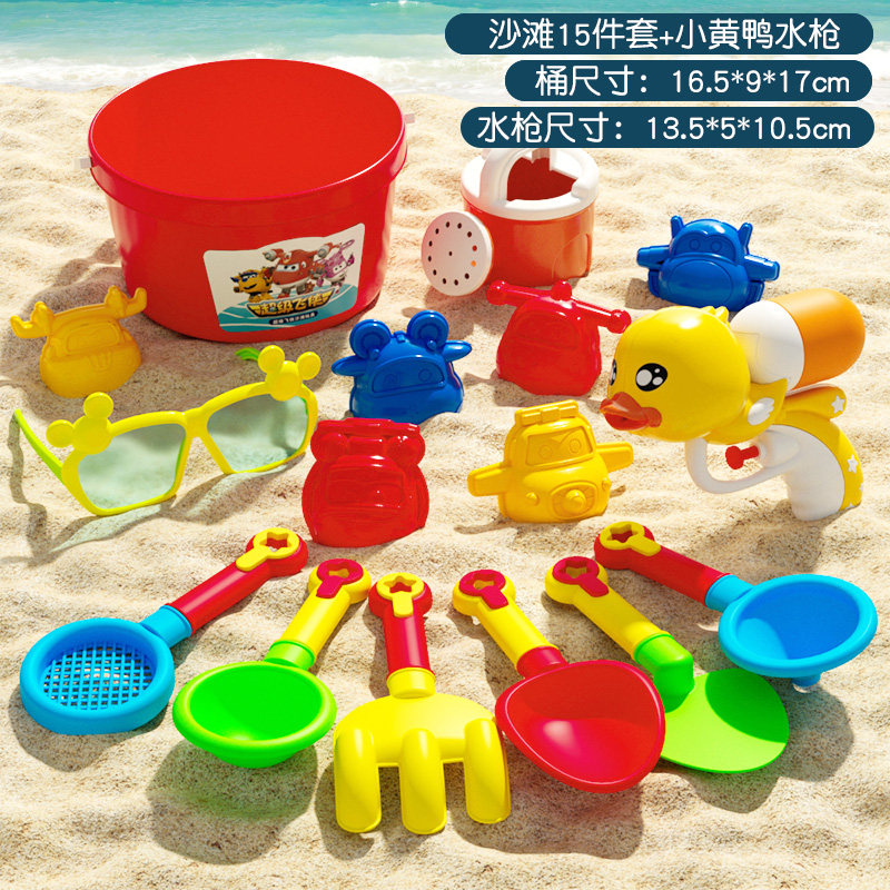 儿童沙滩玩具套装挖沙玩沙工具铲子沙滩桶夏天海边玩沙玩具男女孩 超飞沙滩玩具15件套+小黄鸭水枪