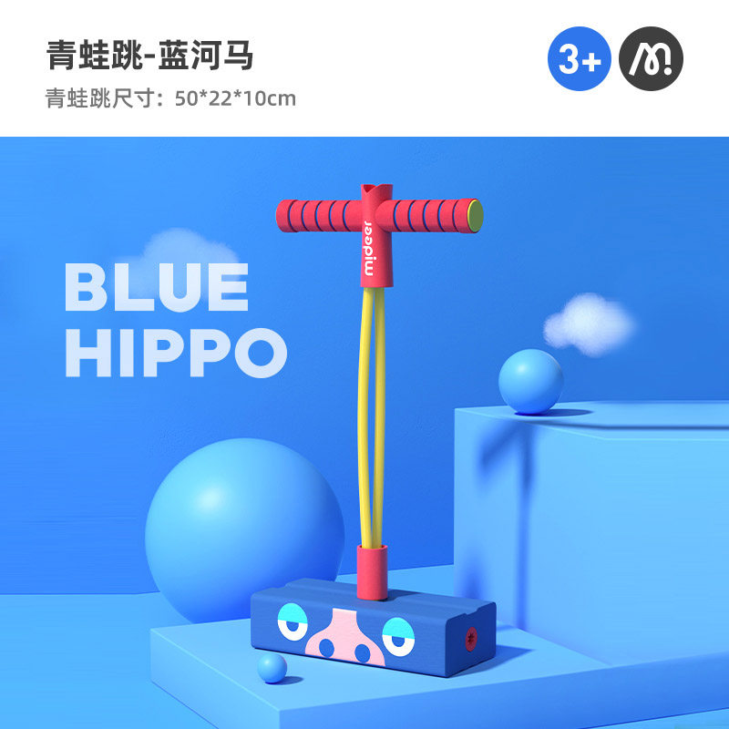 mideer弥鹿跳跳杆儿童助高训练器材助长青蛙跳幼儿园弹跳运动玩具 趣味发声款-蓝河马
