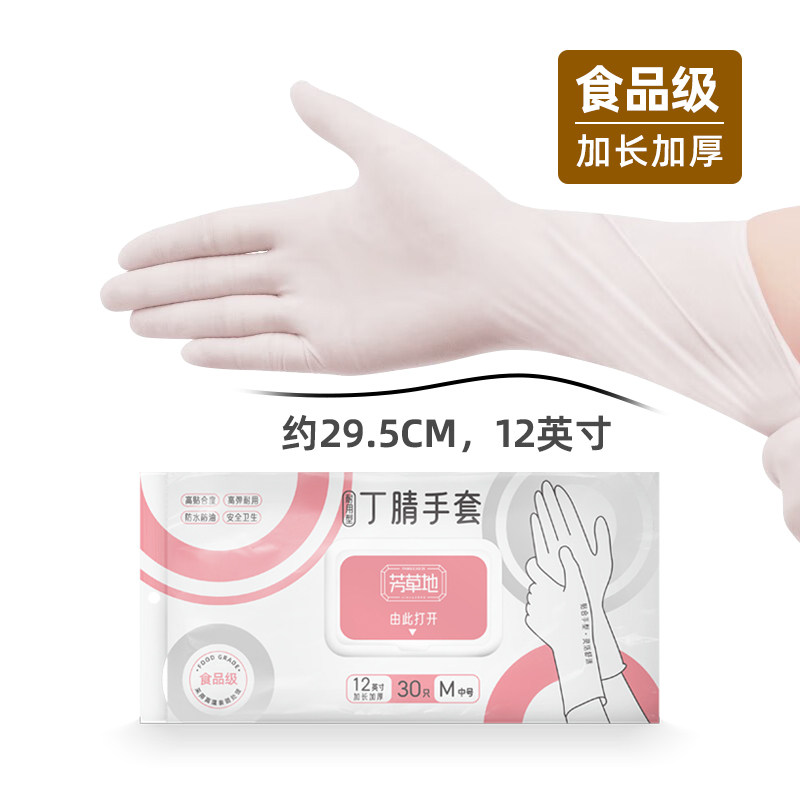 芳草地一次性洗碗手套女丁晴家务清洁厨房耐用食品级加长丁腈 S 【升级抽取包装】加长白丁腈30只