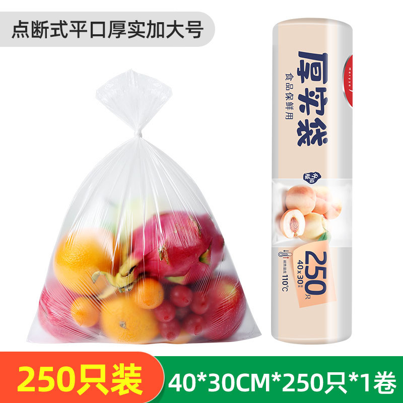 美丽雅厚实保鲜袋食品袋家用冰箱冷藏袋点断收纳加厚超市连卷袋 【卷装平口加厚加大号】30X40cm*250只 件数:1 1件