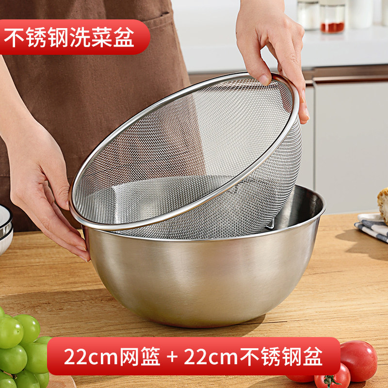 优勤304不锈钢盆洗菜盆果篮家用厨房沥水篮洗水果双层淘米篮 【304不锈钢】洗菜盆+沥水篮22cm