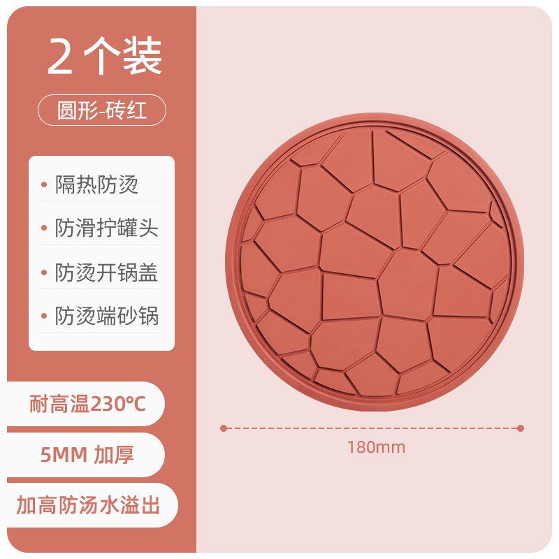 优勤隔热垫防烫桌垫碗垫耐高温餐桌菜盘垫家用餐垫 圆形隔热垫-砖红2个装【5mm加厚 耐温230℃】