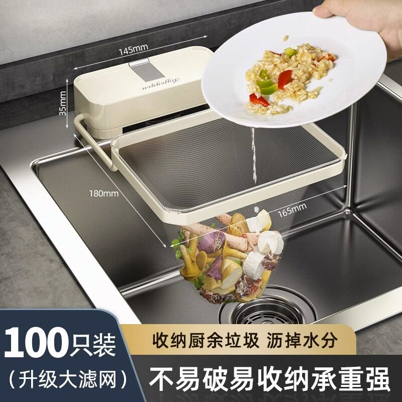 优勤厨房水池垃圾桶水槽洗碗池过滤网轻奢沥水篮剩菜剩饭漏筐 升级款大号过滤网300个装